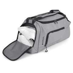 Komforna putna torba kapaciteta 41l, sa pregradom za obuću i dodatnim spoljnim džepovima za sitnice. Može se nositi u ruci ili na leđima, kao ranac. Dimenzije: 55x30x28 xm. Izrađena od kombinacije poliestera i veštačke kože.